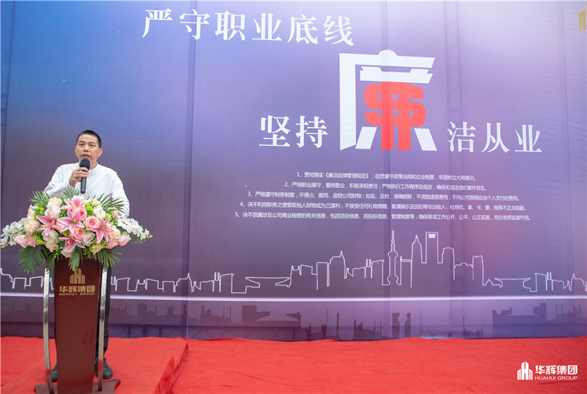 2019年4月13日,華輝集團(tuán)開展“嚴(yán)守職業(yè)底線,堅(jiān)持廉潔從業(yè)”的宣誓儀式,集團(tuán)員工及材料、勞務(wù)合作商參加了活動(dòng)。